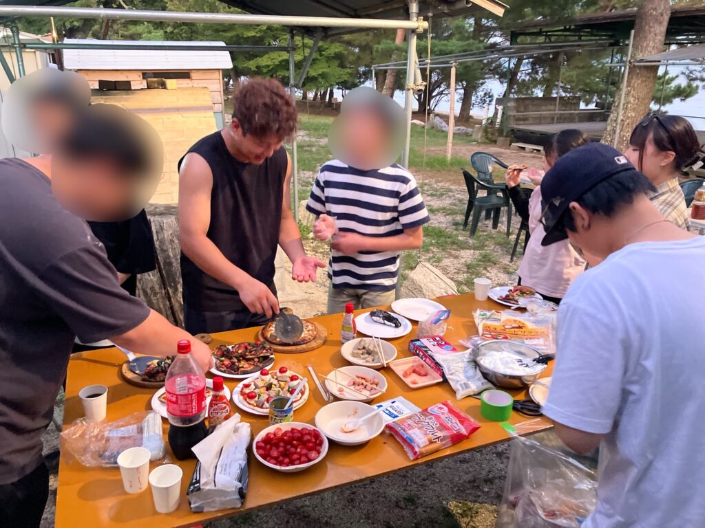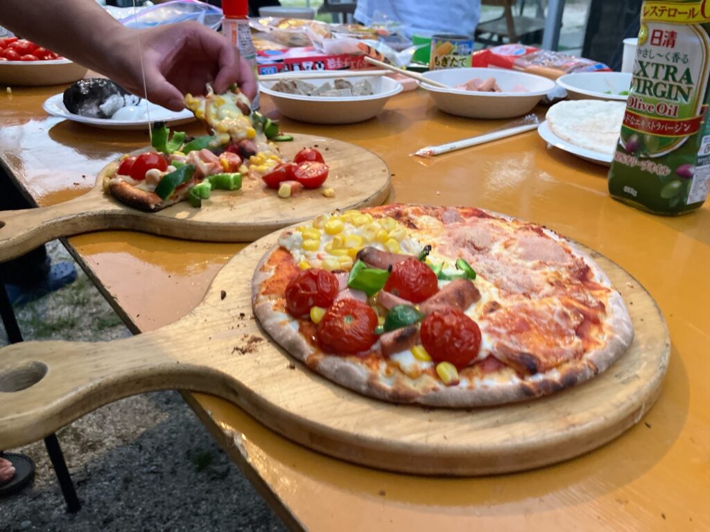 夜は石窯でオリジナルピザを作って焼いて食べました🍕