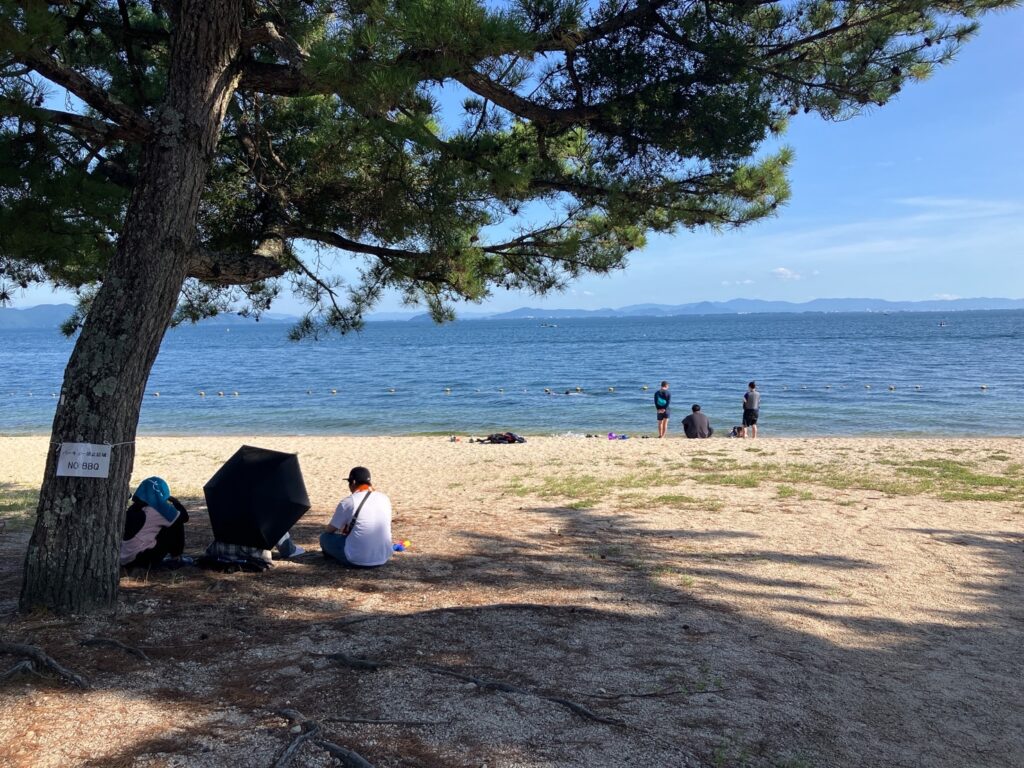 お昼を食べてから合宿のオープニング。実習生さんが考えてきてくれたアイスブレイクをしてから自由交流湖水浴をしたり、琵琶湖を眺めたり、それぞれが思い思いの時間を過ごしました♪♪