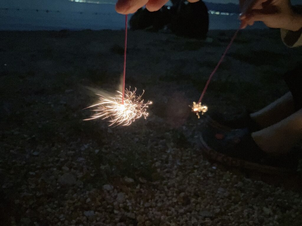 その後は花火を楽しみ、座って月明かりに照らされてキラキラしている琵琶湖を眺めながらお話ししました!ゆったりとした穏やかな時間が流れていました!素敵な時間でした✨