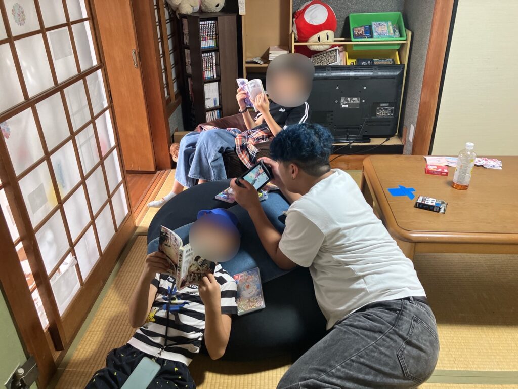 その後も漫画を読んだりゲームをしたりピアノを弾いたり、それぞれのしたいことでのんびり過ごしました。かと思えば、小雨の中でしたが公園で1時間走り回る子もいました!