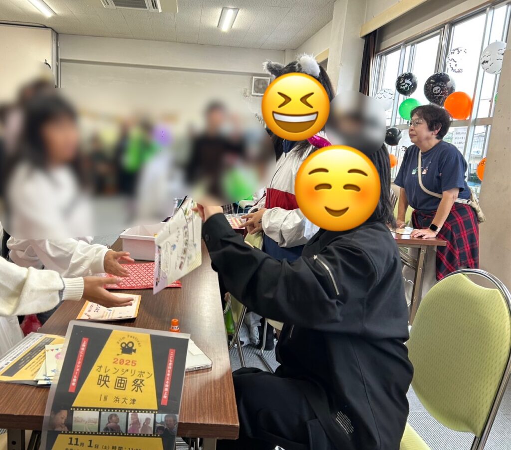 10月26日(日)センターの中高生とボランティア、スタッフ、実習生とで、長等ハロウィンで「あてものじゃんけん」というコーナーを出店しました。こどもとセンターの中高生がじゃんけんをして、勝てば好きなあてものを選んでもらいます。子ども達も中高生も真剣そのものでじゃんけんにいどみました。どの景品をもらうかも、しばらく悩んで持って帰りました。シール、鈴、恐竜のちいさな置物などさまざまな景品がありました。勝てなかったこどもにも、小さな景品を選んでもらいました。