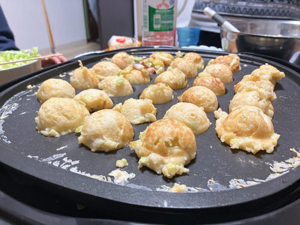 おなかペコペコで帰ったら、センターではたこ焼きパーティーの準備が進められていました!チーズやおもち、コーンなどが入ったたこ焼きもあり、どれもとってもおいしかったです!!