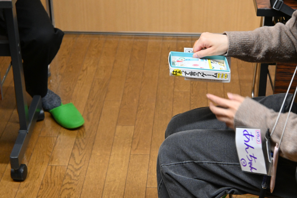 芸術系のプログラムがなじまない参加者向けに「遊び」であるカードゲームを使ったワークショップも用意しました。「はぁって言うゲーム」という居場所で若者たちに人気のカードゲームをアレンジして、ヤングケアラーの日常で出てくる「はぁ」を考えてもらい、ヤングケアラー版「はぁって言うゲーム」づくりをしました。講師はこどもソーシャルワークセンターのスタッフが担当。参加者が少ないプログラムとなったので、午前中でこの活動を終えて、午後はこの後に紹介するキャンプアクティビティに参加することになりました。