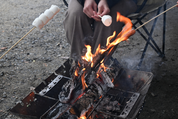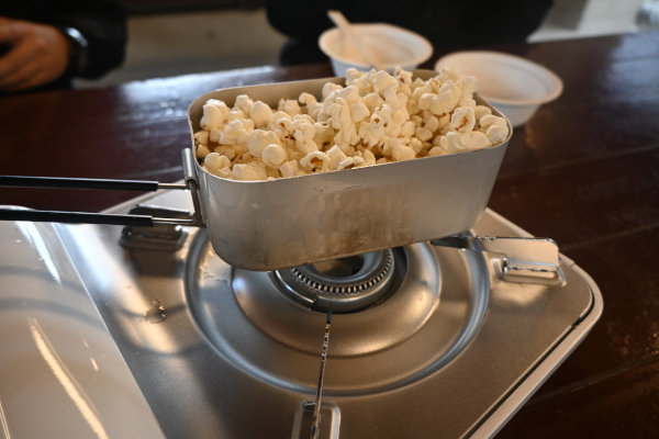 この日のお昼ご飯は、いわゆるキャンプ飯。元こどもソーシャルワークセンタースタッフに講師となってもらい野外炊事で作られた「あったか豚汁」や焚き火を囲んでパン作りなどキャンプクッキングを楽しみました。豚汁はキャンプ直前に障がい施設の方が育てた滋賀県の新鮮な野菜を大量に寄贈されたものを使い、赤こんにゃくなど滋賀県の名物も入ったもので、雪が時折ちらつく寒さの中でヤングケアラーたちの身体のみならず心もあたためてくれました。またオートキャンプ場には暖房器具が備えられたあったかテントも準備され、午後からのアートワークショップは自由参加だったこともありそこで夕方まで過ごす参加者もいました。